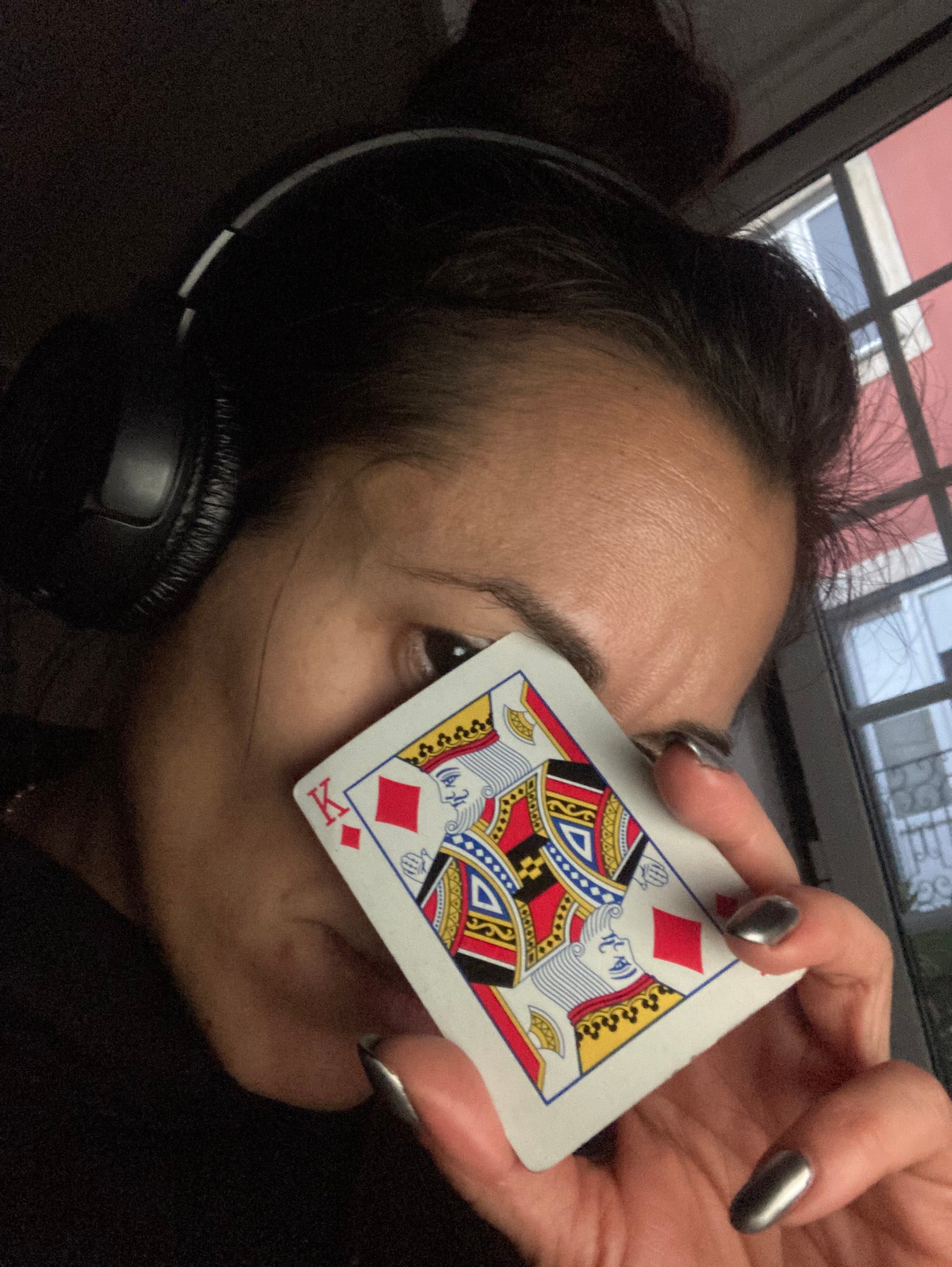 I pull the King of Diamonds, red, and he looks me dead in the eye and says “Oh, now this is a good one”, and I agree without knowing why.